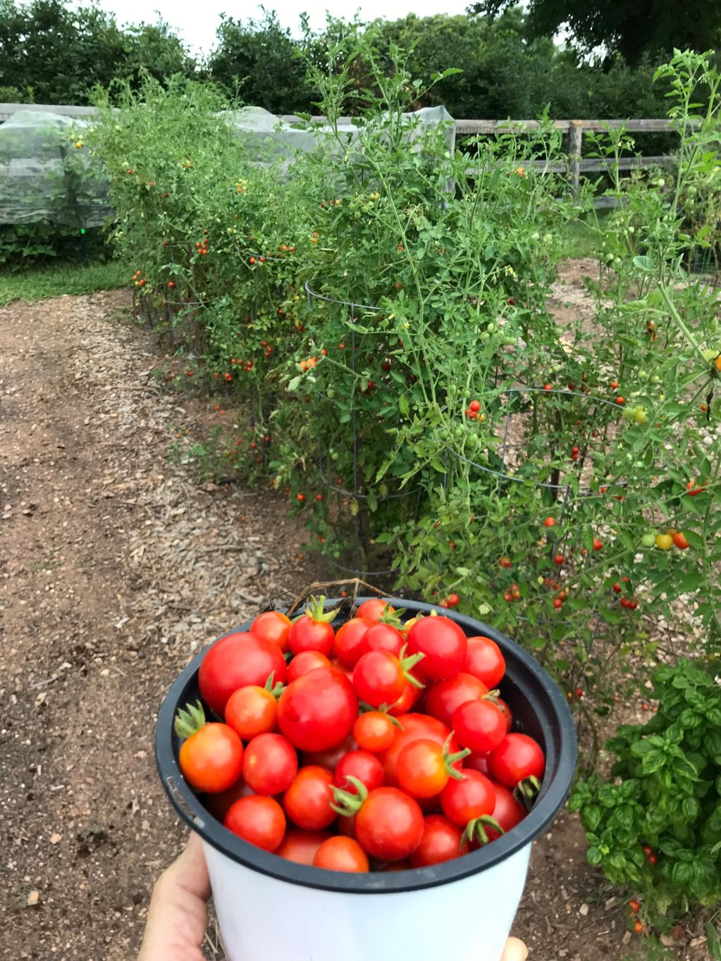 These better girl tomatoes are producing quite well. These were purchased as small plants from an organic grower at the local farmer's market.