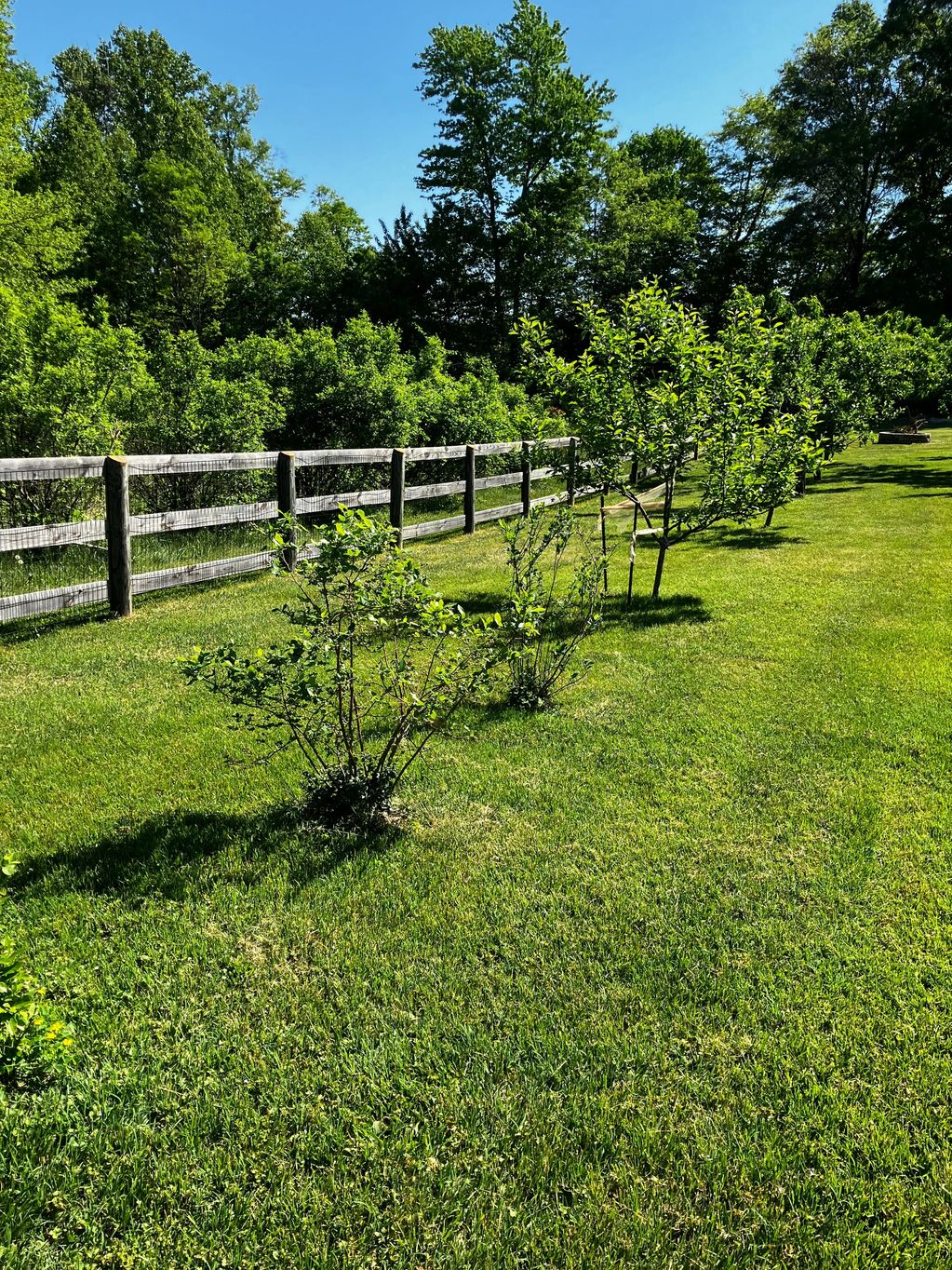 The apple and peach trees in the background are quite healthy but neither have any fruit due to a late freeze.