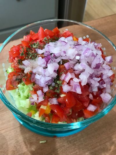 This is our first summer making cold soups and we couldn't be happier with this Gazpacho recipe! Like the cucumbers, our tomatoes are ripening quickly, and we can't keep up with just putting them in our salads!